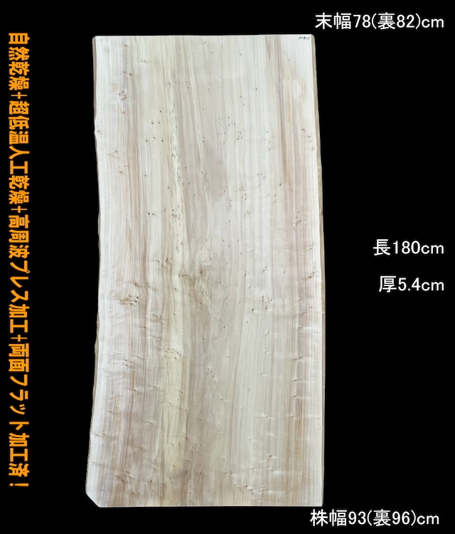 ◆全国都道府県 送料無料◆ 栃 無垢 一枚板 寸法:長180cm× 末幅78cm(裏81cm)~中間幅83cm(裏87cm)~株幅89cm(裏93cm) × 厚5.6cm 約54kg この板の良い所 木味の良い栃! サイズもバッチリ! 杢もバッチリ! 綺麗な板だ。。 紅白でバランスが良いですね。 裏でも表でも好きな面をご使用下さい。 塗装すればギラギラ間違い無し! 割れて無ければホントに7○よ(笑) お買い得だね~ この板のちょっと悪い所 木口抜け割れ、末は6㎝ヒビ 補修すれば大丈夫。。 ☆出荷前に再度両面最終仕上げのフラット加工後、梱包出荷いたします ☆ 厚みも2mm~5mm程度削るため薄くなることなどはご了承下さい。 (フラット加工が不要は方はご指示下さい。) ◎北海道、沖縄県を含むすべての都道府県で送料無料です。 但し離島の場合や、配送業者の規定により送料が別途必要となる場合があります。 ・法人屋号や、個人様でも〇〇商店や〇〇ショップなど、屋号のある場合はお知らせください。(看板や店名が分かる表示をお願いします。) ・送料無料の範囲はすべて軒先降ろしまたは配送車両横付付近の敷地10歩以内迄となります。 ・室内への開梱設置が必要な場合はオプションで別途費用が必要となりますのでお問合せ下さい。 ・弊社より発送後、お客様地域の配送業者の規定によりご自宅まで配送ができない場合があります。 その場合は最寄りの営業所止めとなります。もしくはご希望の住所への配送の場合は別途費用が発生します。