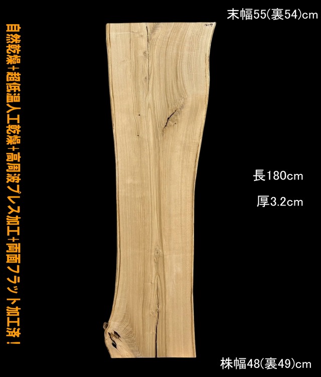 ◆全国都道府県 送料無料◆ 木曽檜 無垢 一枚板 寸法:長190cm× 末幅44cm(裏46cm) ~ 中間幅46-53cm ~ 株幅52cm(裏53cm) × 厚3.4cm 約15kg この板の良い所 桧の王様、木曽檜! 乾燥、両面フラット加工仕上済! しかも高周波プレス済! めっちゃ安価でしょ! 本当は耳をカットして出荷しようと考えていたのですが、勿体無いので耳付で出品します。 仕上げれば綺麗なピンク色で木曽の香りが漂いますよ! この板のちょっと悪い所 耳カットで38cm角板OK 裏抜け節あります。 ☆出荷前に再度両面最終仕上げのフラット加工後、梱包出荷いたします ☆ 厚みも2mm~5mm程度削るため薄くなることなどはご了承下さい。 (フラット加工が不要は方はご指示下さい。) ◎北海道、沖縄県を含むすべての都道府県で送料無料です。 但し離島の場合や、配送業者の規定により送料が別途必要となる場合があります。 ※離島の場合、輸送のサイズ規制によりカットの必要がある場合がございますので、ご購入の前にお問合せ下さい。 ・法人屋号や、個人様でも〇〇商店や〇〇ショップなど、屋号のある場合はお知らせください。(看板や店名が分かる表示をお願いします。) ・送料無料の範囲はすべて軒先降ろしまたは配送車両横付付近の敷地10歩以内迄となります。 ・室内への開梱設置が必要な場合はオプションで別途費用が必要となりますのでお問合せ下さい。 ・弊社より発送後、お客様地域の配送業者の規定によりご自宅まで配送ができない場合があります。 その場合は最寄りの営業所止めとなります。もしくはご希望の住所への配送の場合は別途費用が発生します。