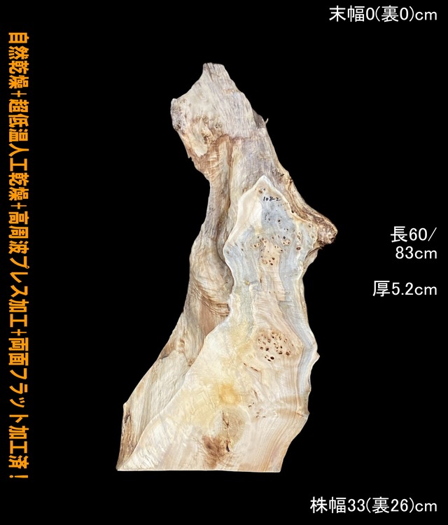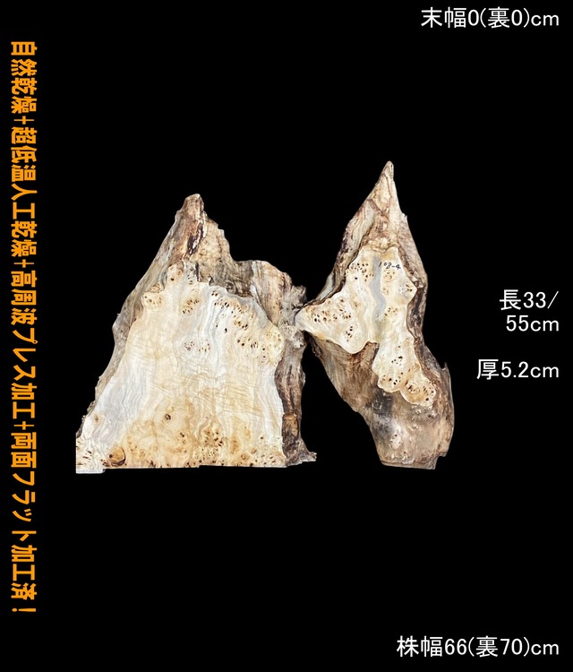 ◆全国都道府県 送料無料◆ 楡瘤 レジン用 無垢 一枚板 寸法:長200cm× 末幅33cm(裏40cm) ~ 中間幅04cm(裏32cm) ~ 株幅21cm(裏29cm)× 厚3.6cm 約9kg この板の良い所 綺麗なニレのコブ! カッコいいですよ~ 近年楡瘤も高額になりました。 レジン屋さんに人気ですね。 形も瘤も綺麗です。 この板のちょっと悪い所 いい瘤ですよ、 あなたの責任で(笑) ☆出荷前に再度両面最終仕上げのフラット加工後、梱包出荷いたします ☆ 厚みも2mm~5mm程度削るため薄くなることなどはご了承下さい。 (フラット加工が不要は方はご指示下さい。) ◎北海道、沖縄県を含むすべての都道府県で送料無料です。 但し離島の場合や、配送業者の規定により送料が別途必要となる場合があります。 ・法人屋号や、個人様でも〇〇商店や〇〇ショップなど、屋号のある場合はお知らせください。(看板や店名が分かる表示をお願いします。) ・送料無料の範囲はすべて軒先降ろしまたは配送車両横付付近の敷地10歩以内迄となります。 ・室内への開梱設置が必要な場合はオプションで別途費用が必要となりますのでお問合せ下さい。 ・弊社より発送後、お客様地域の配送業者の規定によりご自宅まで配送ができない場合があります。 その場合は最寄りの営業所止めとなります。もしくはご希望の住所への配送の場合は別途費用が発生します。