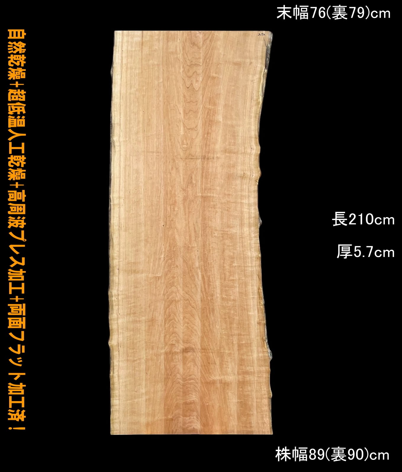 寸法:長210cm× 末幅76cm(裏79cm) ~ 中間幅79cm(裏81cm) ~ 株幅89cm(裏90cm)× 厚5.7cm 約62kg