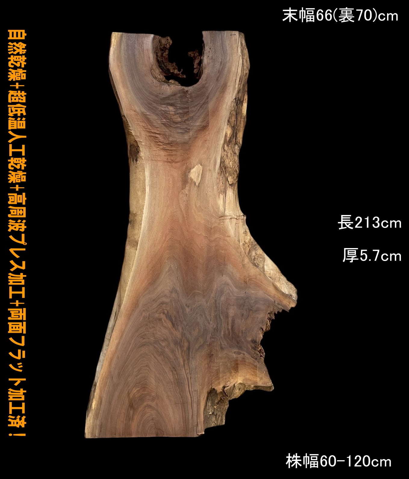 寸法:長213cm× 末幅66cm(裏70cm) ~ 中間幅38cm(裏58cm) ~ 株幅60-120cm× 厚5.7cm 約44kg