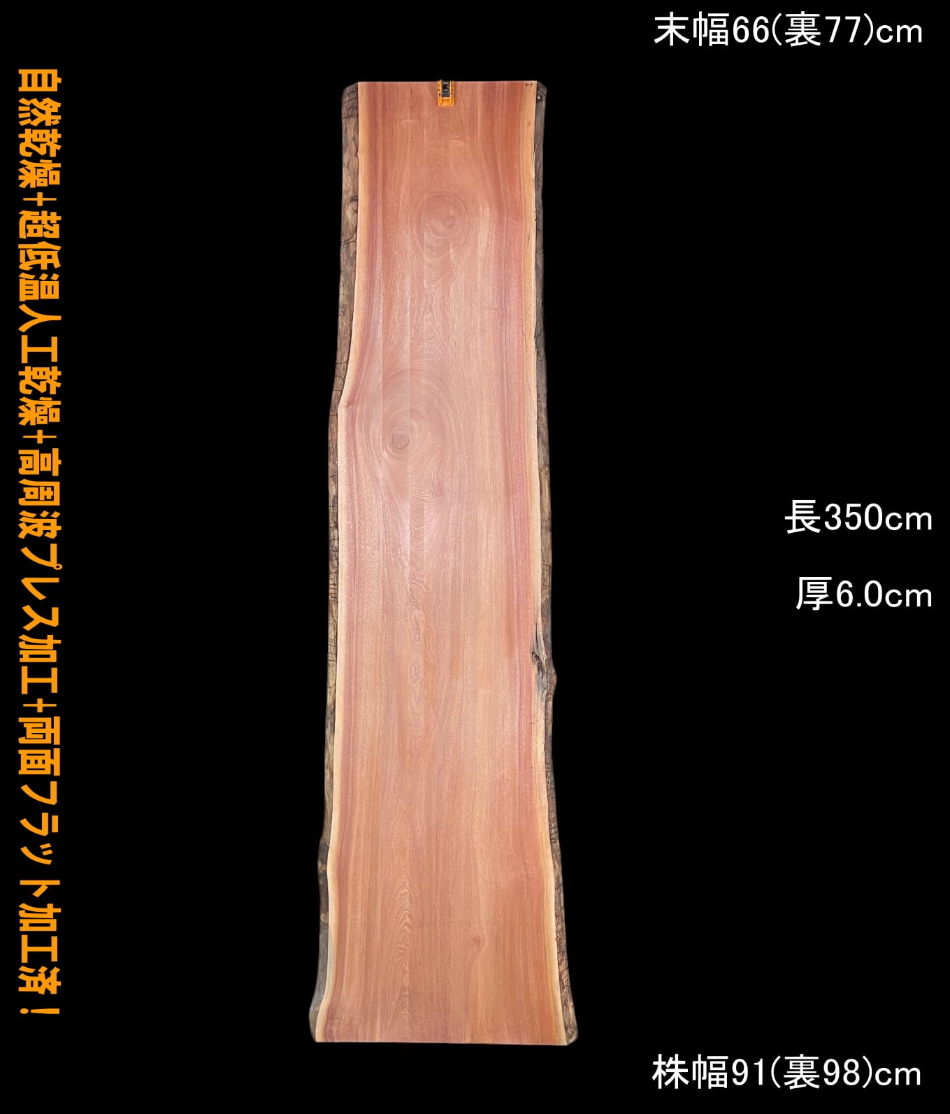 寸法:長350cm× 末幅66cm(裏77cm) ~ 中間幅74cm(裏82cm) ~ 株幅91cm(裏98cm)× 厚6.0cm 約140kg