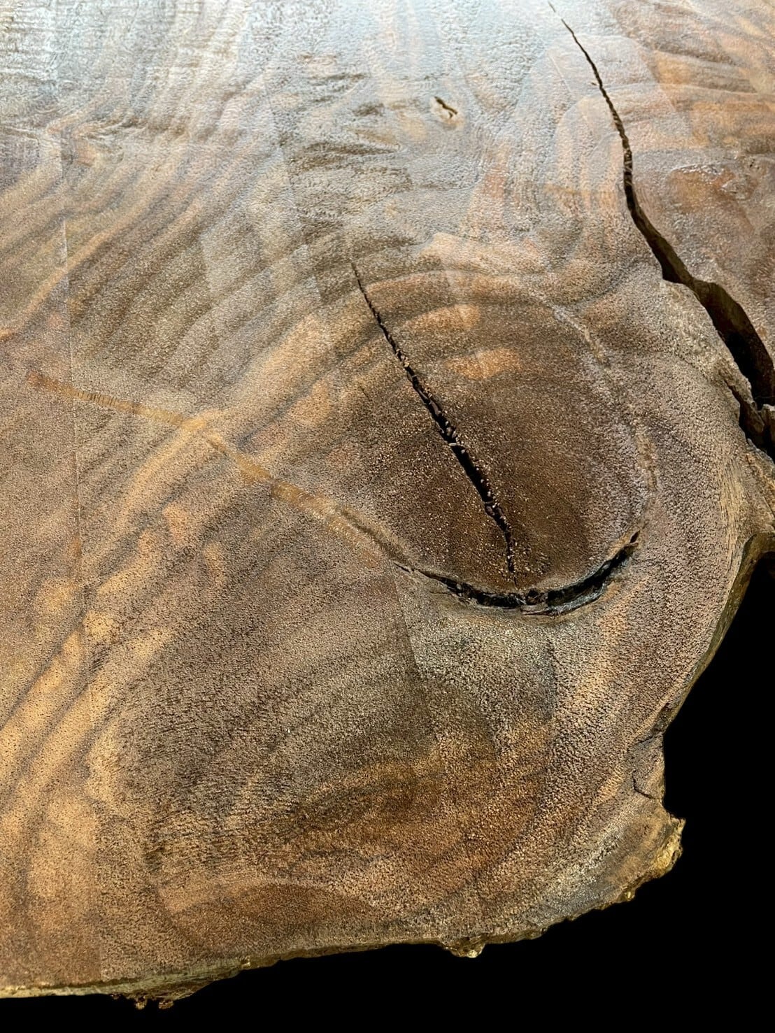 この継目が見えないクラロは値打ちが半減ですね、、 超高級材なので、土に埋まっている根っこ部分の土を掘って伐採した状態がよく分かります。 根っこの年輪もバッチリ見えておもしろいですね~
