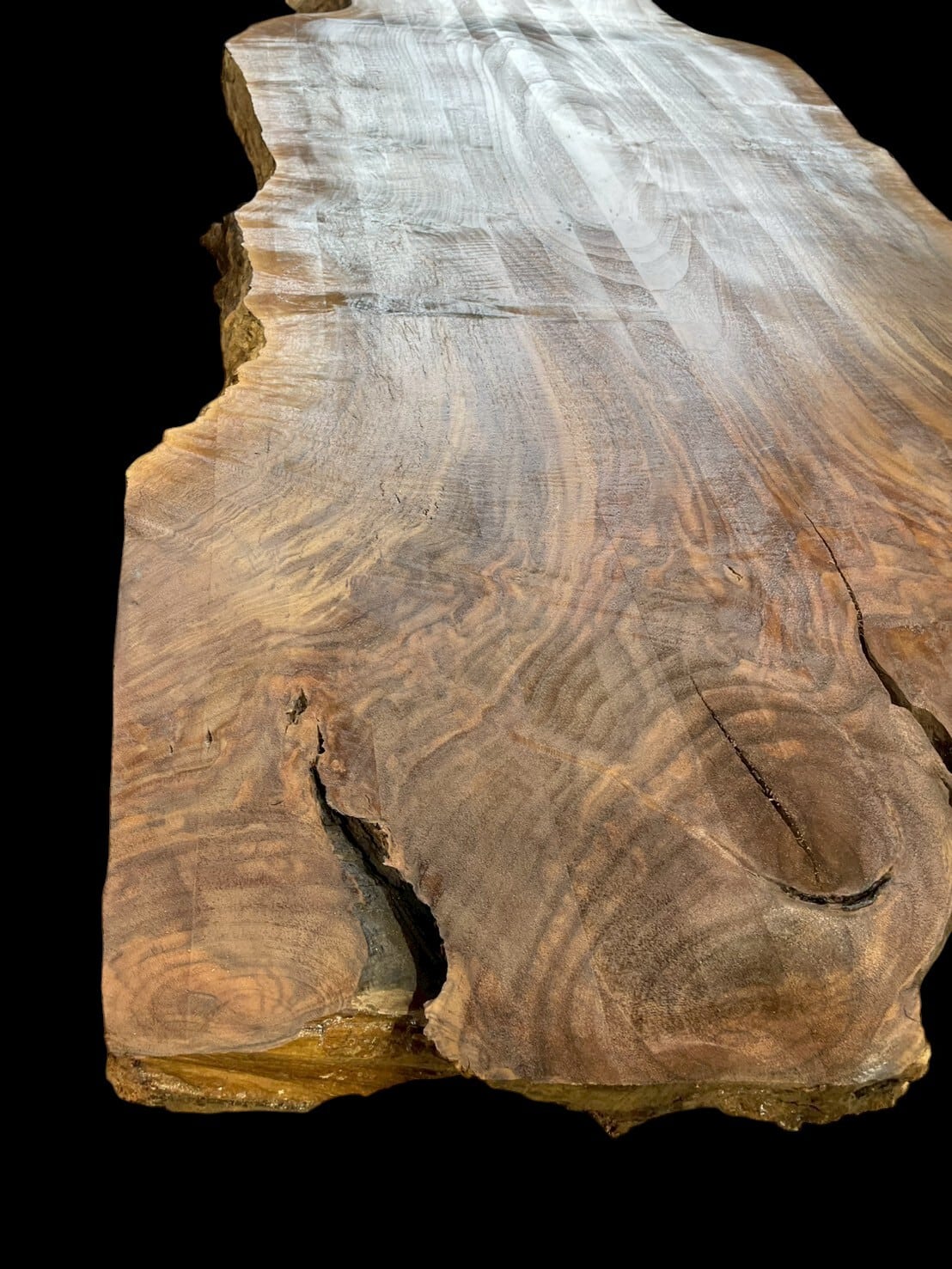 ウォールナットには複数種類があり、大きくは3種類、アメリカのウォールナット、接ぎ木で造られたクラロウォールナットとバストゥーンウォールナットが現在主に一枚板として販売されています。