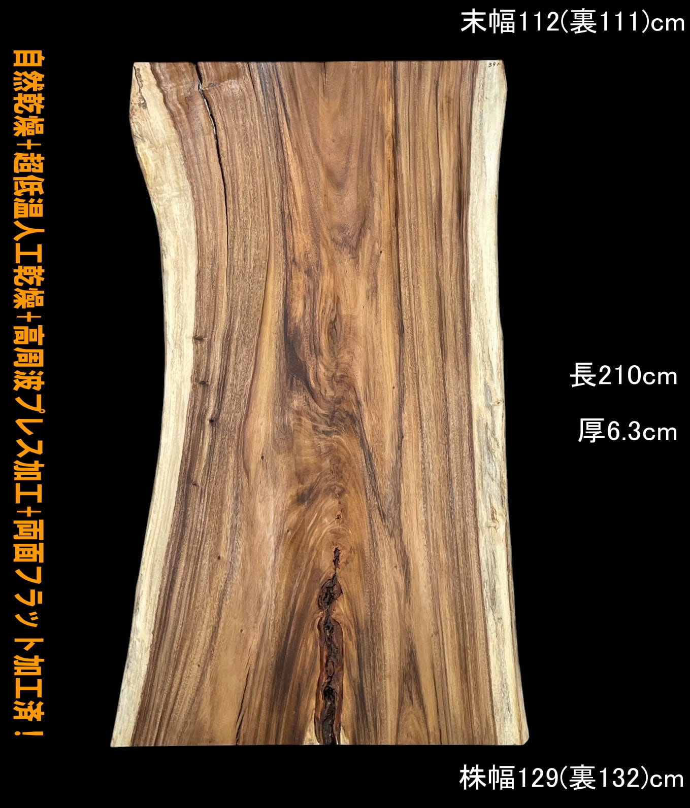 寸法:長210cm× 末幅112cm(裏111cm) ~ 中間幅102cm(裏105cm) ~ 株幅129cm(裏132cm)× 厚6.3cm 約87kg