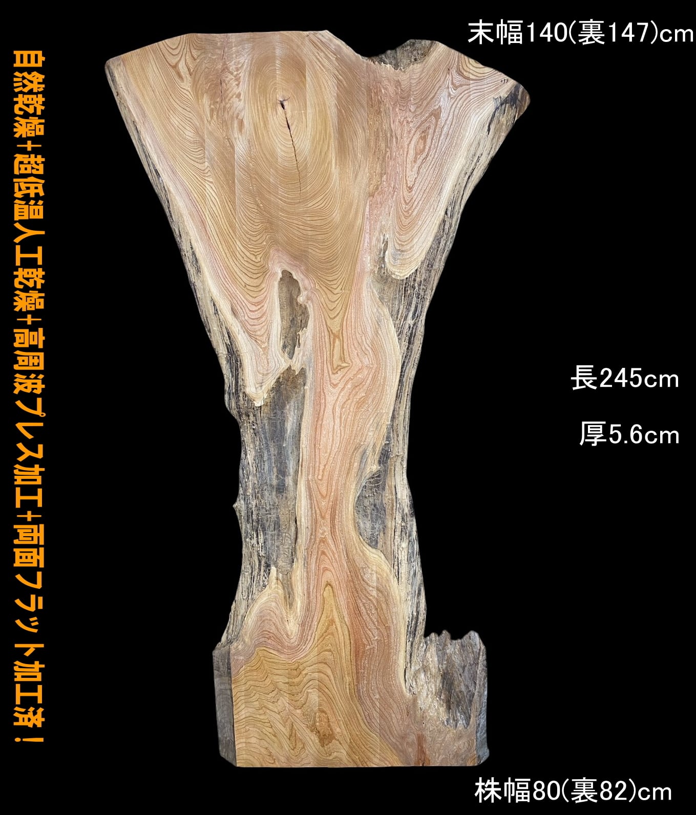 寸法:長245cm× 末幅140cm(裏147cm) ~ 中間幅23cm(裏58cm) ~ 株幅80cm(裏82cm)× 厚5.6cm 約73kg