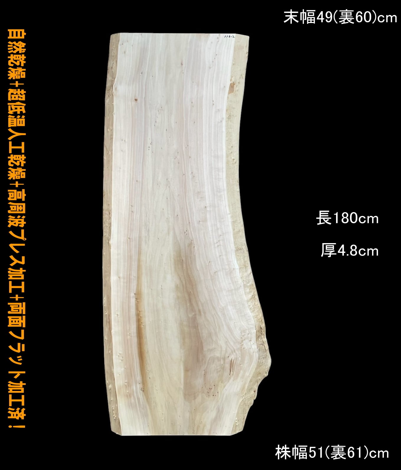 ジャパニーズポプラ B116-2 一枚板 乾燥材 棚板 カウンター テーブル DIY 耳付 天板 テレビボード ◆全国都道府県送料無料◆
