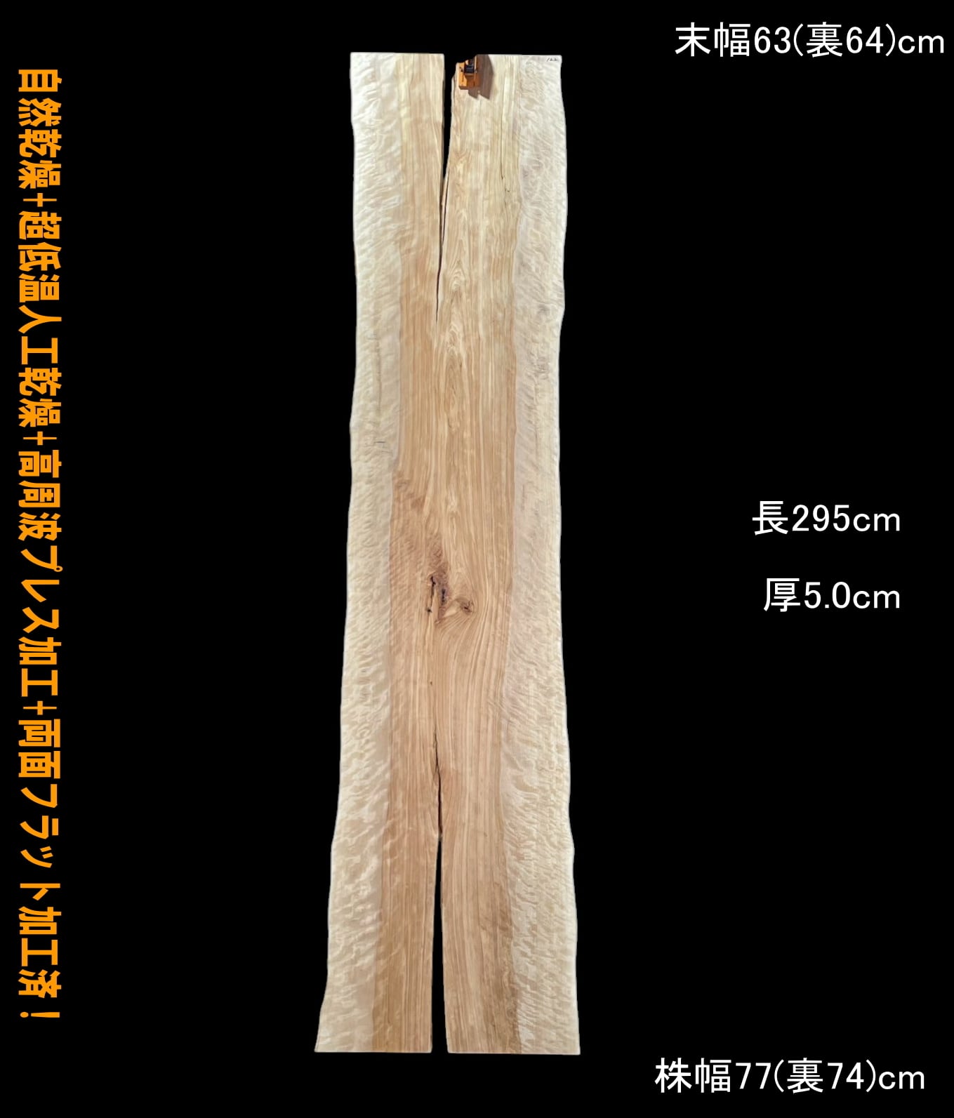 寸法:長295cm× 末幅63cm(裏64cm) ~中間幅64cm(裏64cm) ~ 株幅77cm(裏74cm)× 厚5.0cm 約68kg