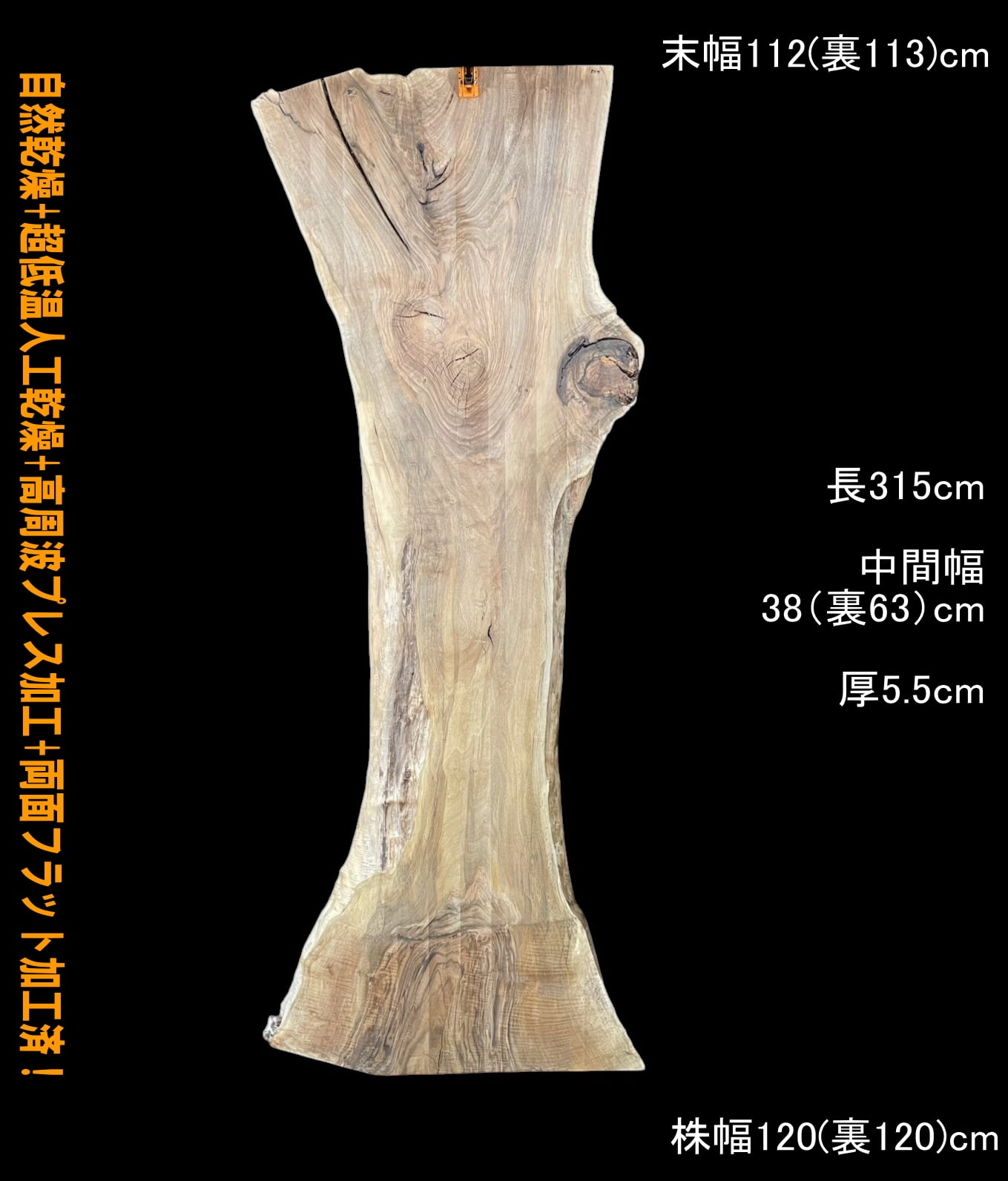 寸法:長315cm× 末幅112cm(裏113cm) ~中間幅38cm(裏63cm) ~ 株幅120cm(裏120cm)× 厚5.5cm 約86kg