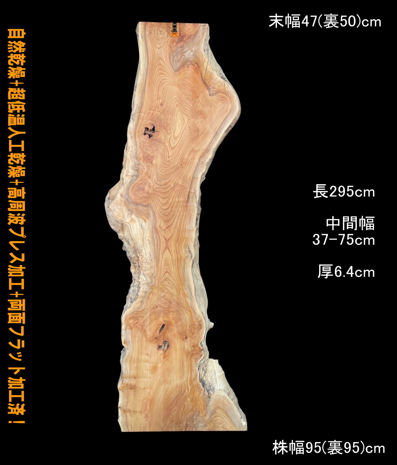 寸法:長295cm× 末幅47cm(裏50cm) ~中間幅37-75cm ~ 株幅95cm(裏95cm)× 厚6.4cm 約84kg