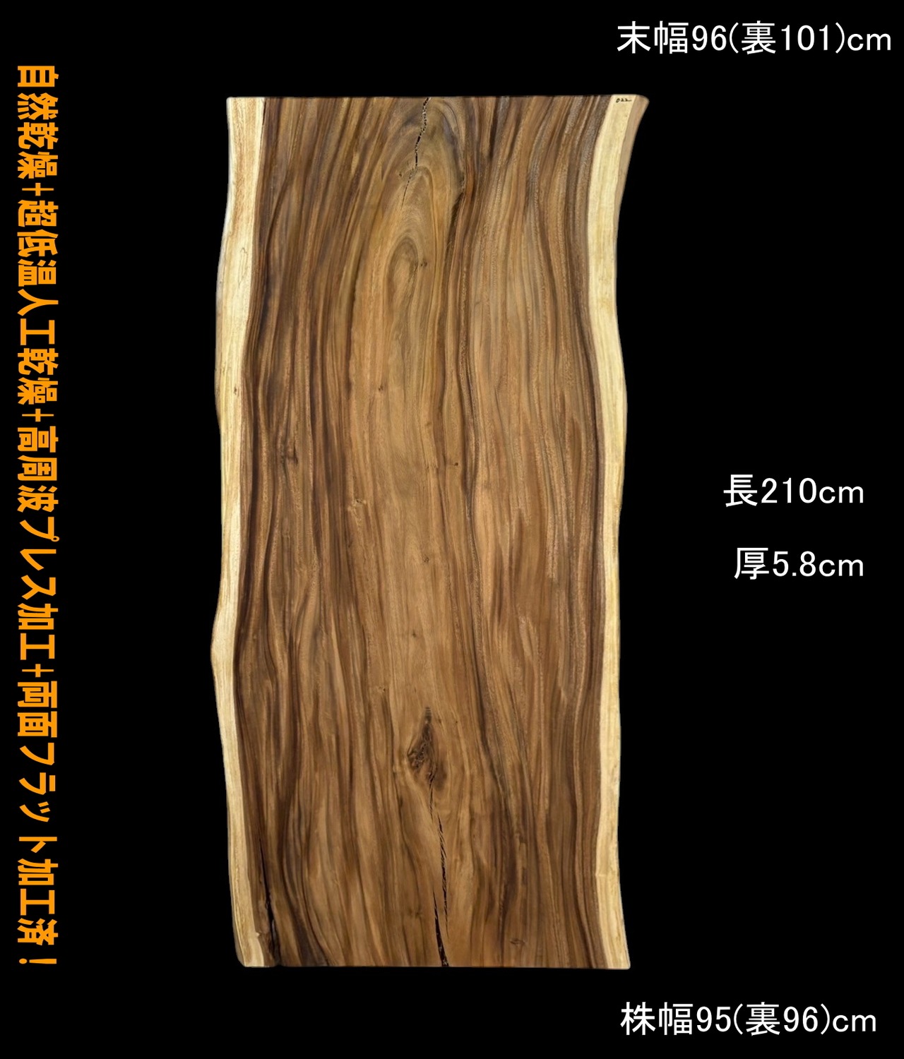 寸法:長210cm× 末幅96cm(裏101cm) ~中間幅96cm(裏98cm) ~ 株幅95cm(裏96cm)× 厚5.8cm 約82kg