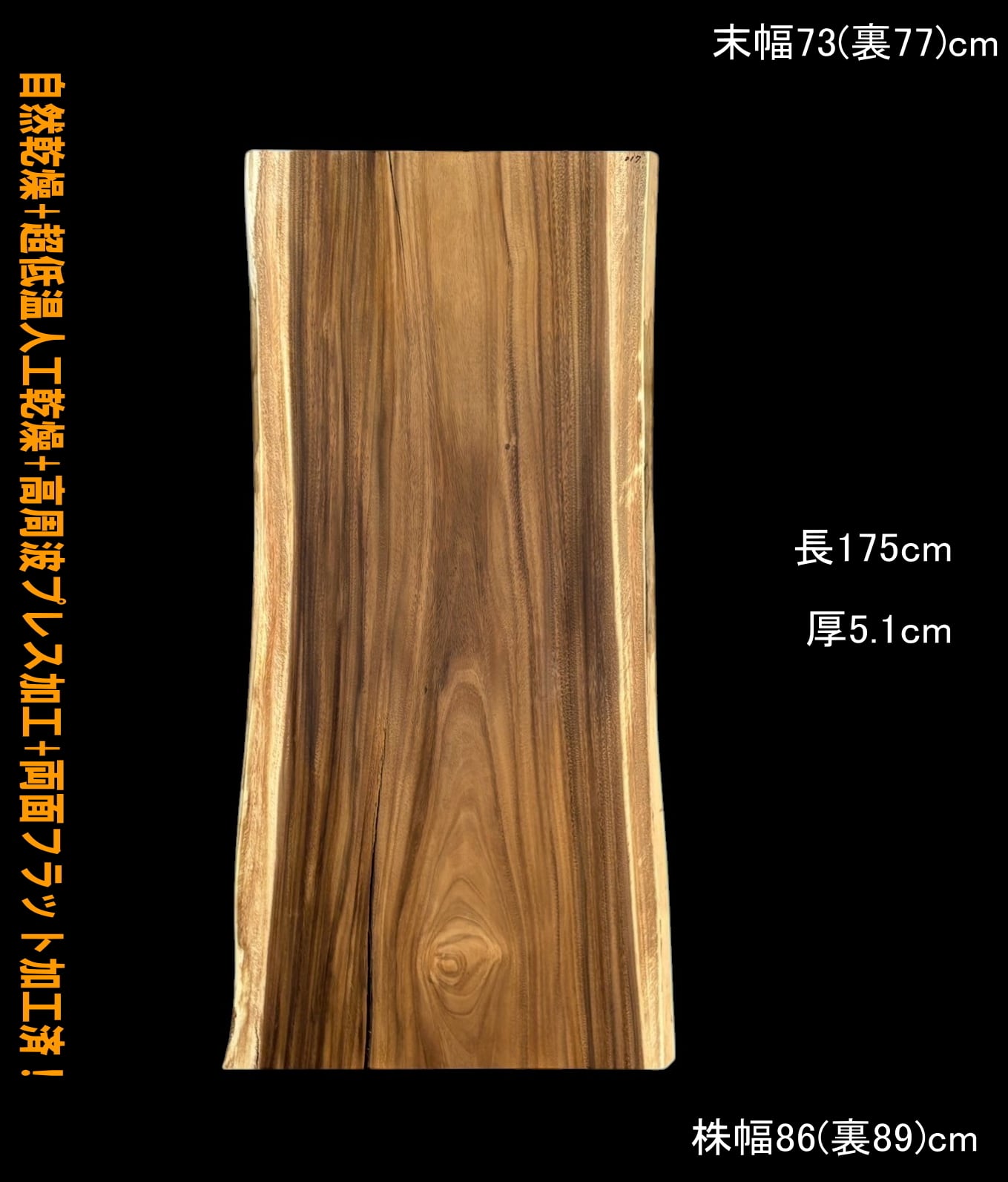 寸法:長175cm× 末幅73cm(裏77cm) ~中間幅74cm(裏78cm) ~ 株幅86cm(裏89cm)× 厚5.1cm 約46kg