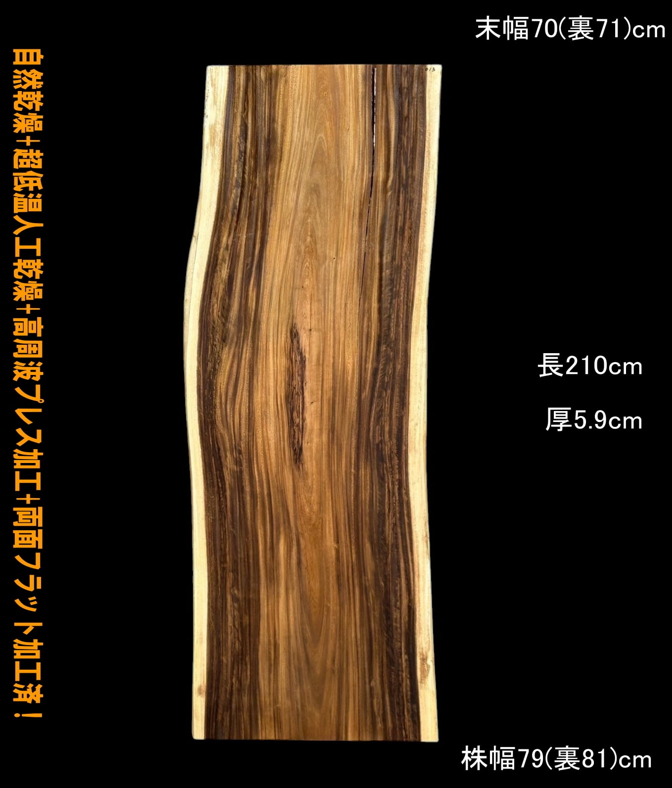 寸法:長210cm× 末幅70cm(裏71cm) ~中間幅75cm(裏77cm) ~ 株幅79cm(裏81cm)× 厚5.9cm 約61kg