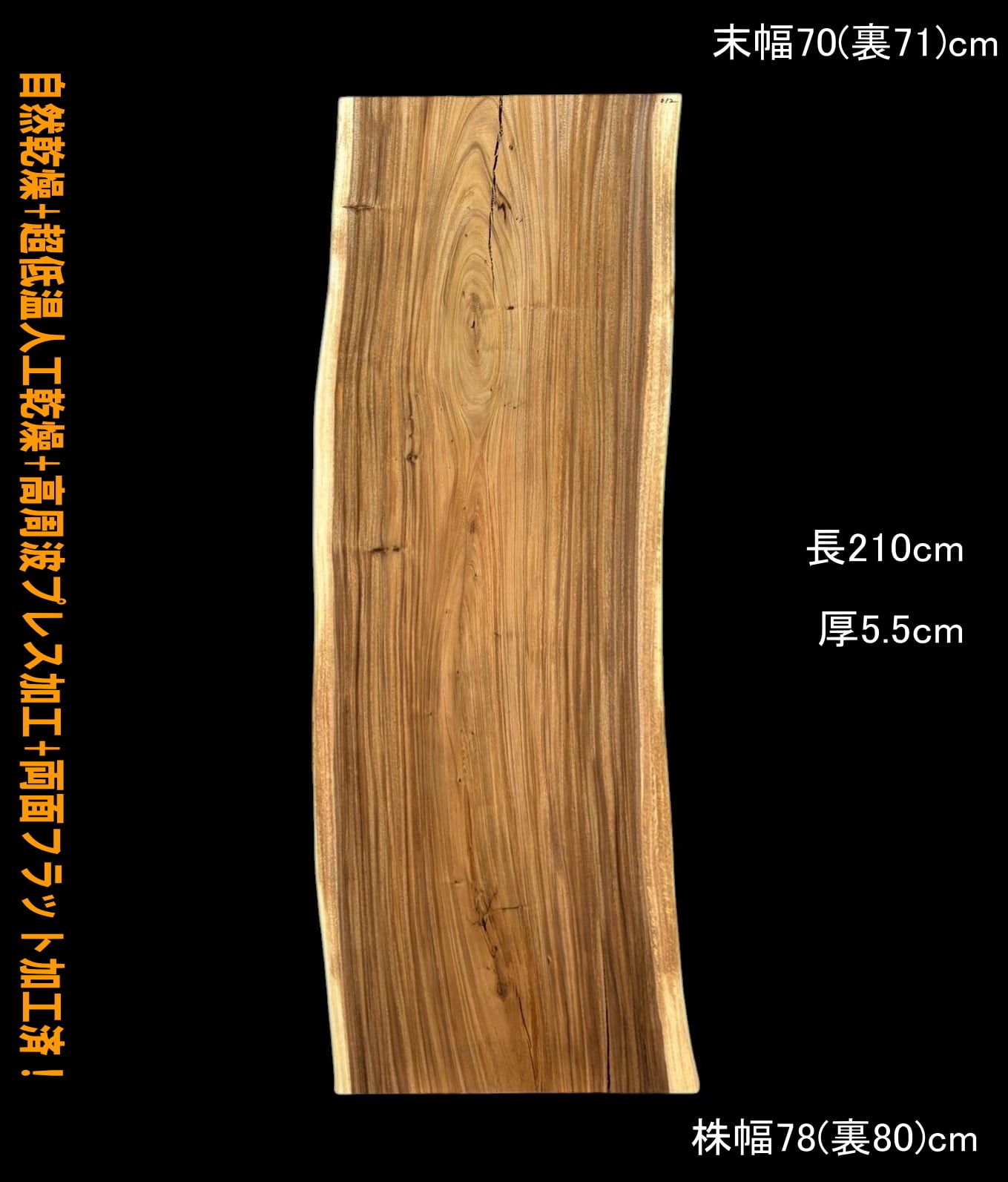 寸法:長210cm× 末幅70cm(裏71cm) ~中間幅74cm(裏74cm) ~ 株幅78cm(裏80cm)× 厚5.5cm 約56kg
