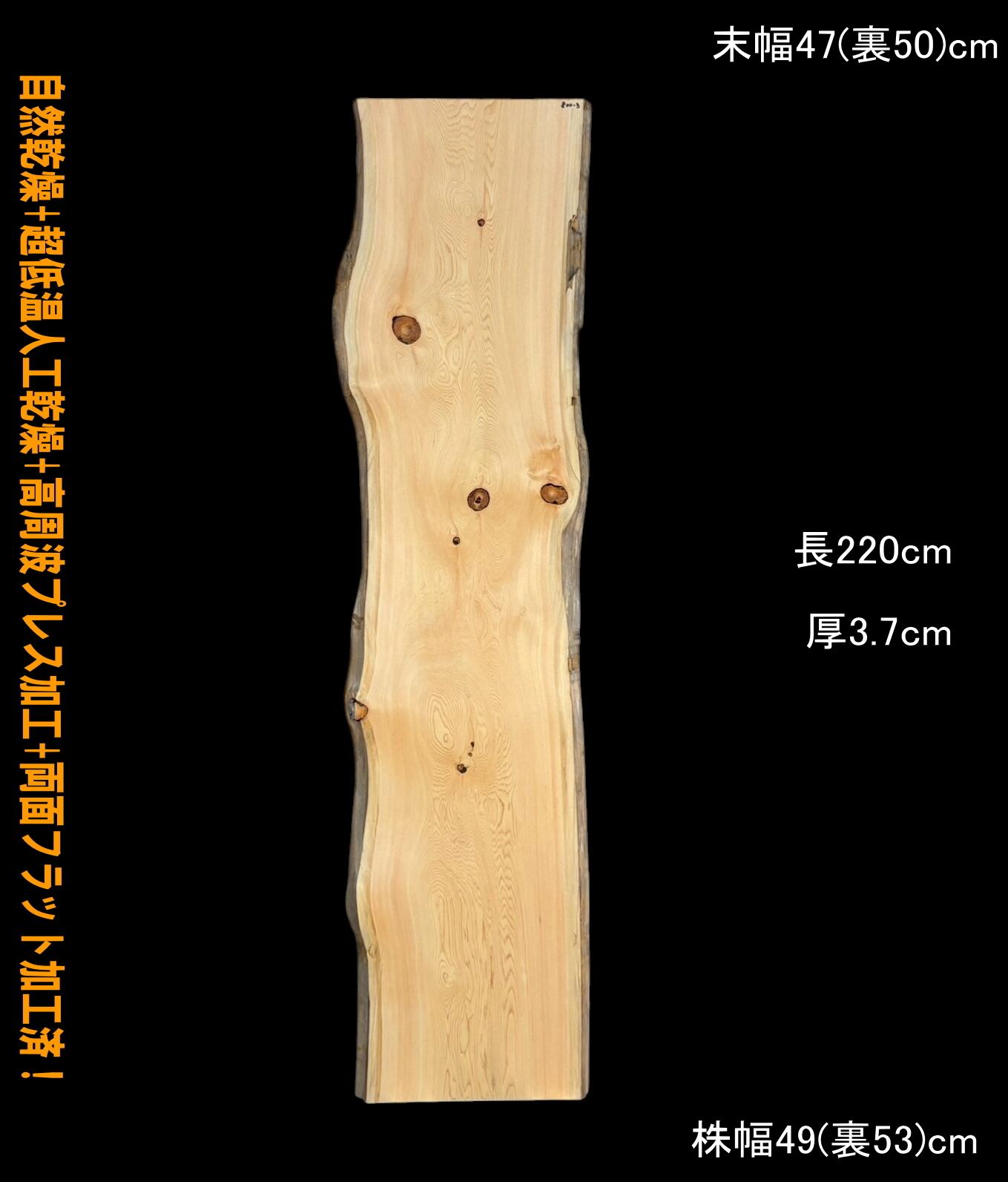 寸法:長220cm× 末幅47cm(裏50cm) ~ 中間幅42cm(裏50cm) ~ 株幅49cm(裏53cm) × 厚3.7cm 約17kg