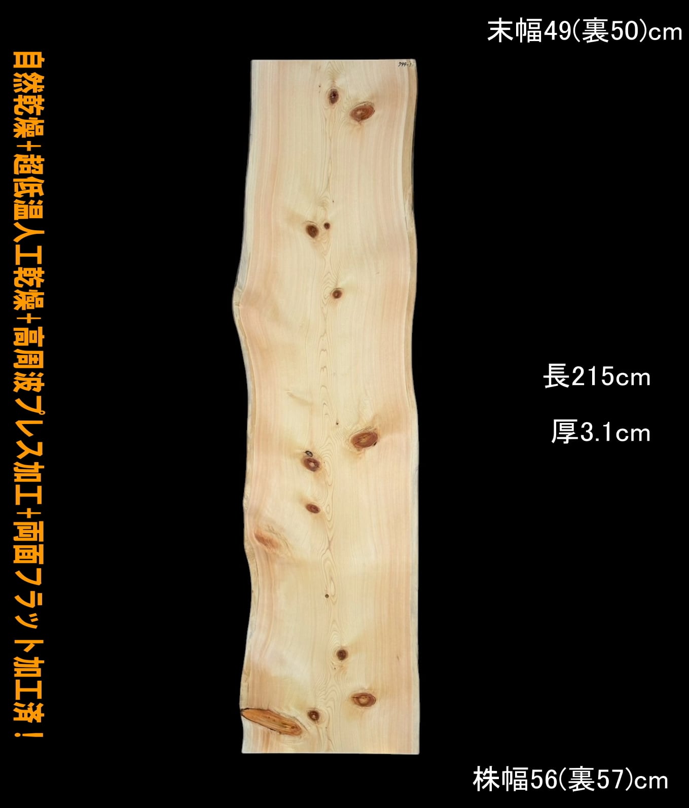 寸法:長215cm× 末幅49cm(裏50cm) ~ 中間幅51-57cm ~ 株幅56cm(裏57cm) × 厚3.1cm 約16kg