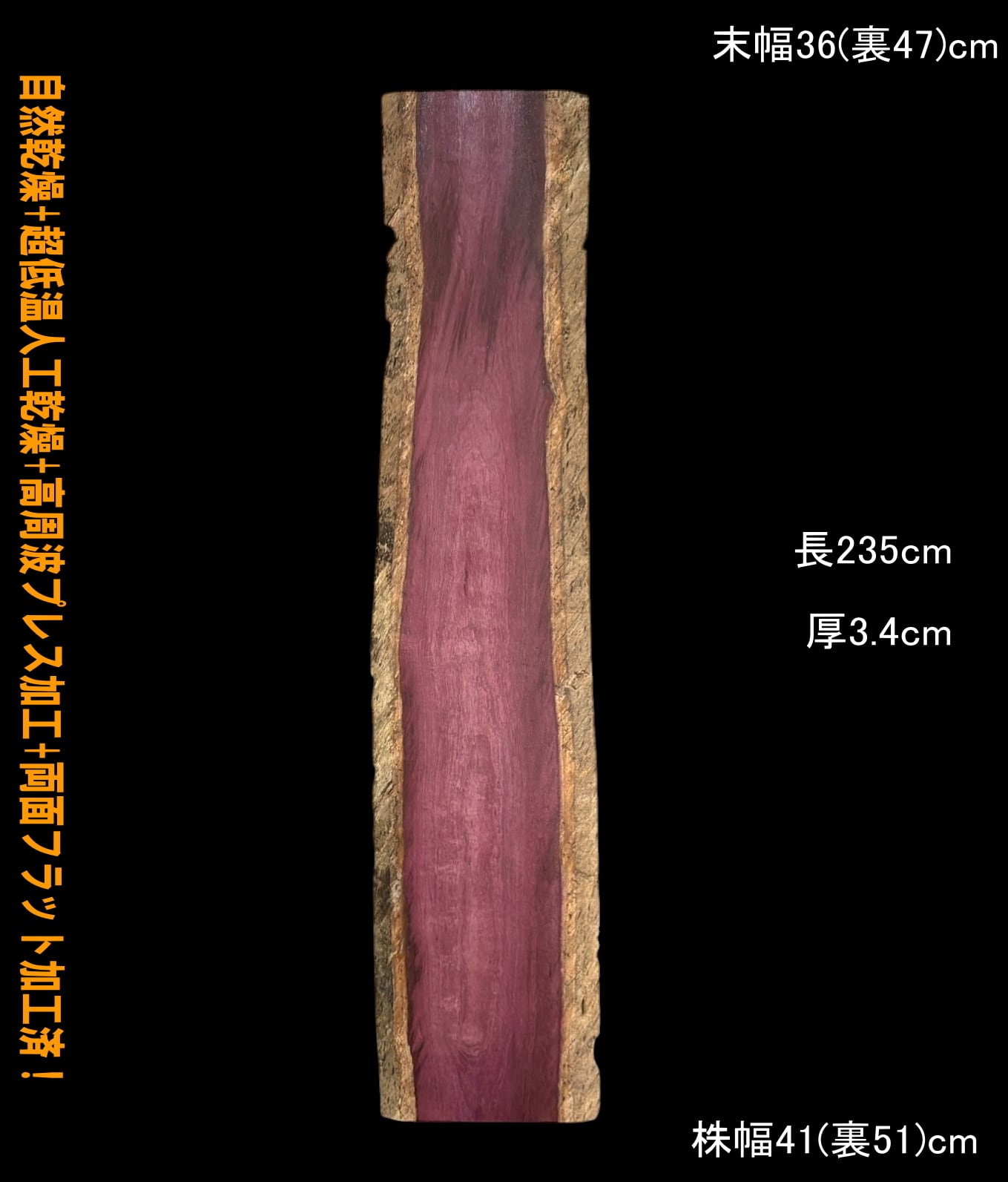 パープルハート B511-2 一枚板 乾燥材 棚板 カウンター テーブル DIY 耳付 天板 テレビボード ◆全国都道府県送料無料◆