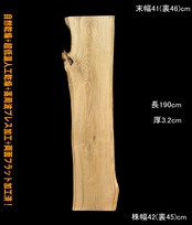 寸法:長190cm× 末幅41cm(裏46cm) ~ 中間幅39-48cm ~ 株幅42cm(裏45cm) × 厚3.2cm 約17kg