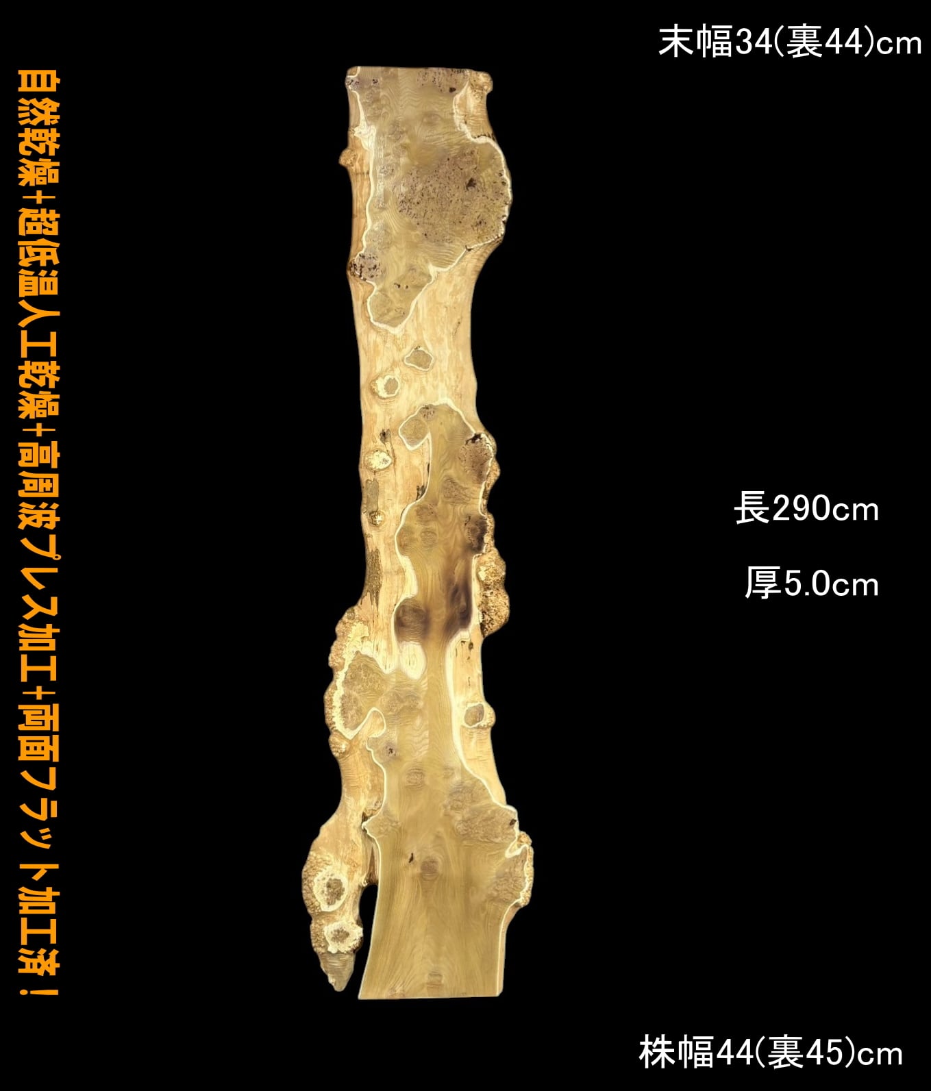 寸法:長290cm× 末幅34cm(裏44cm) ~中間幅40-70cm ~ 株幅44cm(裏45cm)× 厚5.0cm 約52kg