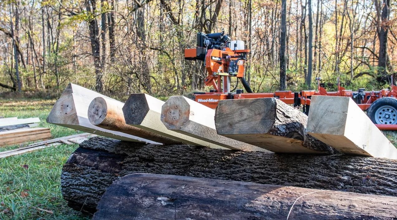 ー製材機を活用して小径の丸太の円柱や多角柱への加工が