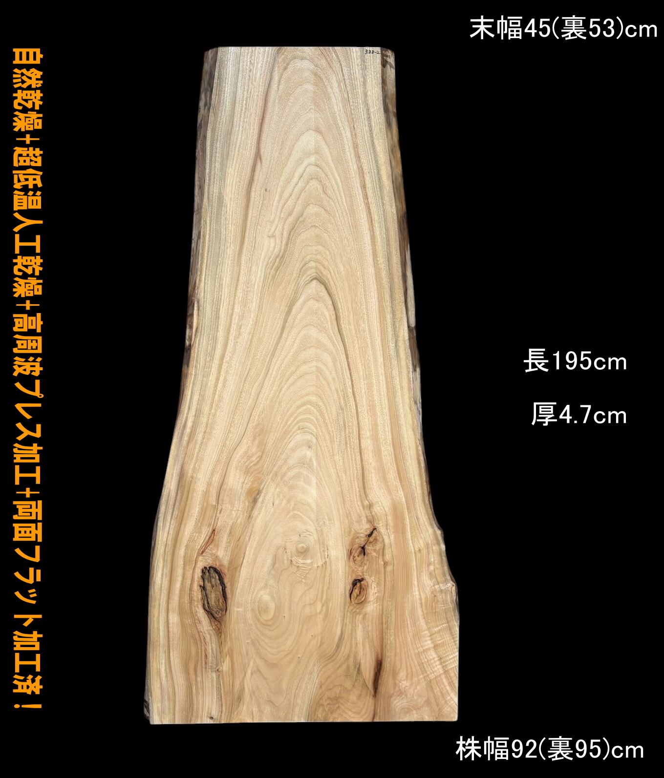 寸法:195cm × 末幅45cm(裏53cm) ~ 株幅92cm(裏95cm) × 厚4.7cm 約34kg