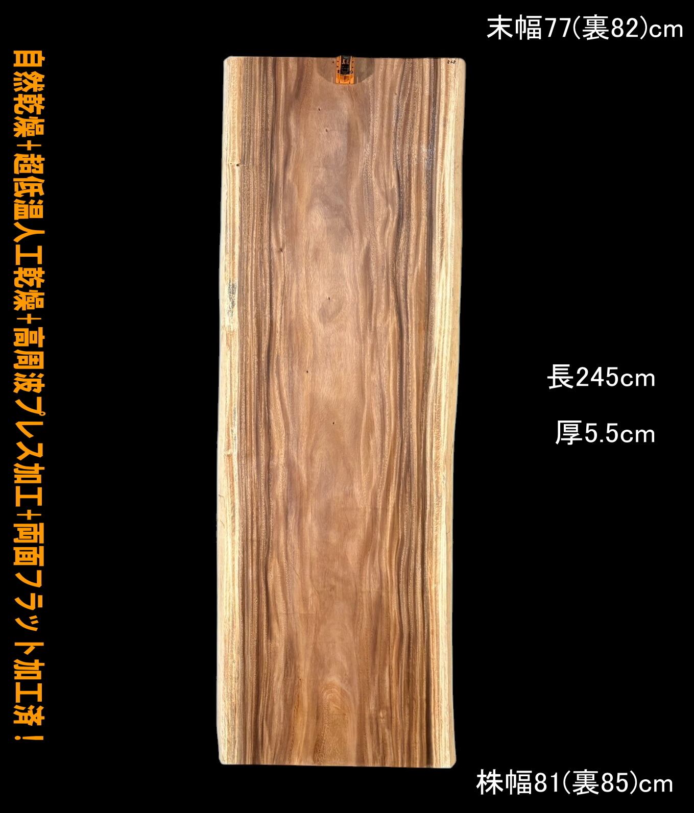 寸法:245cm × 末幅77cm(裏82cm) ~ 中間幅78cm(裏84cm) ~ 株幅81cm(裏85cm) × 厚5.5cm 約64kg