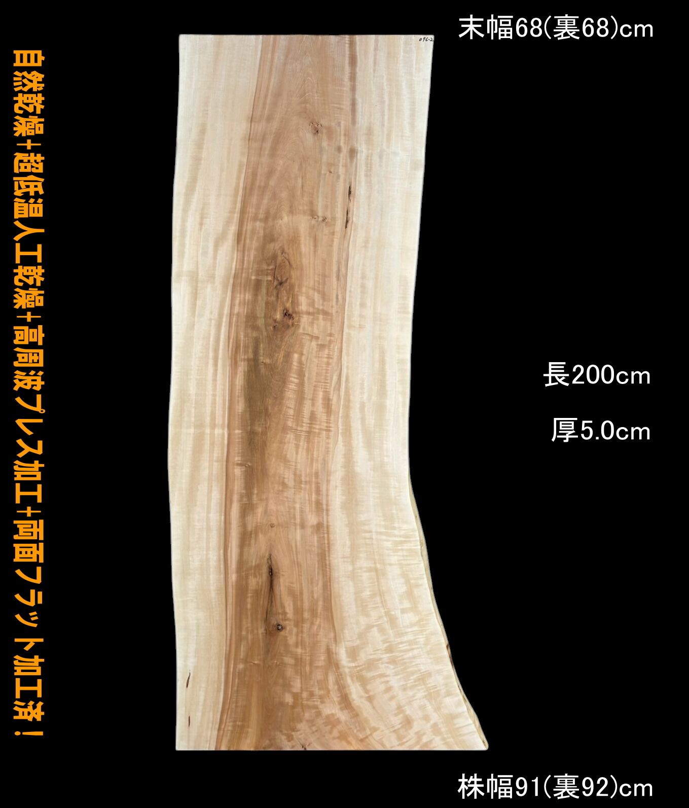 寸法:長200cm × 末幅68cm(裏68cm) ~ 中間幅68cm(裏68cm) ~ 株幅91cm(裏92cm) × 厚5.0cm 約46kg