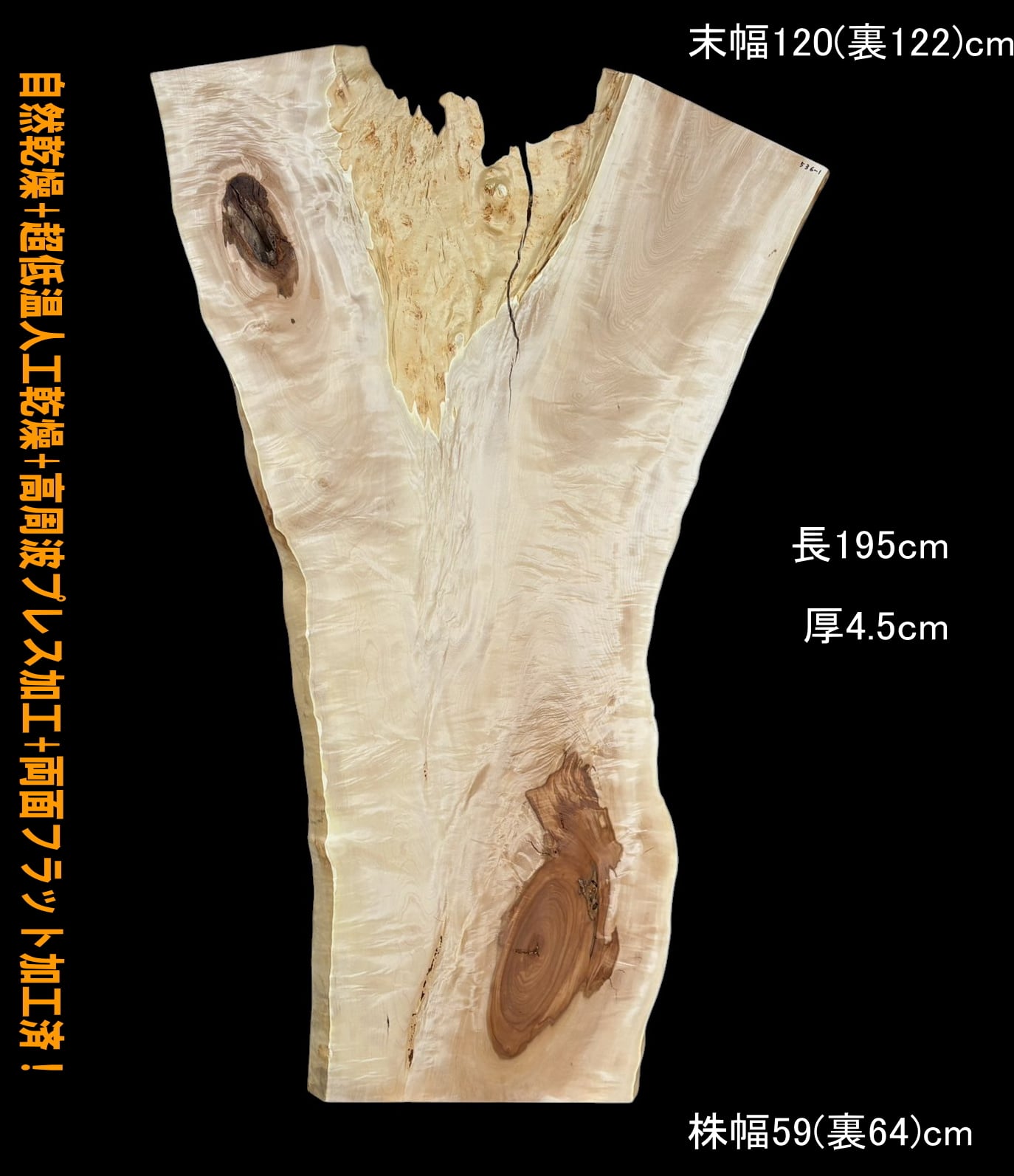 寸法:長195cm × 末幅120cm(裏122cm) ~ 中間幅70cm(裏74cm) ~ 株幅59cm(裏64cm) × 厚4.5cm 約34kg