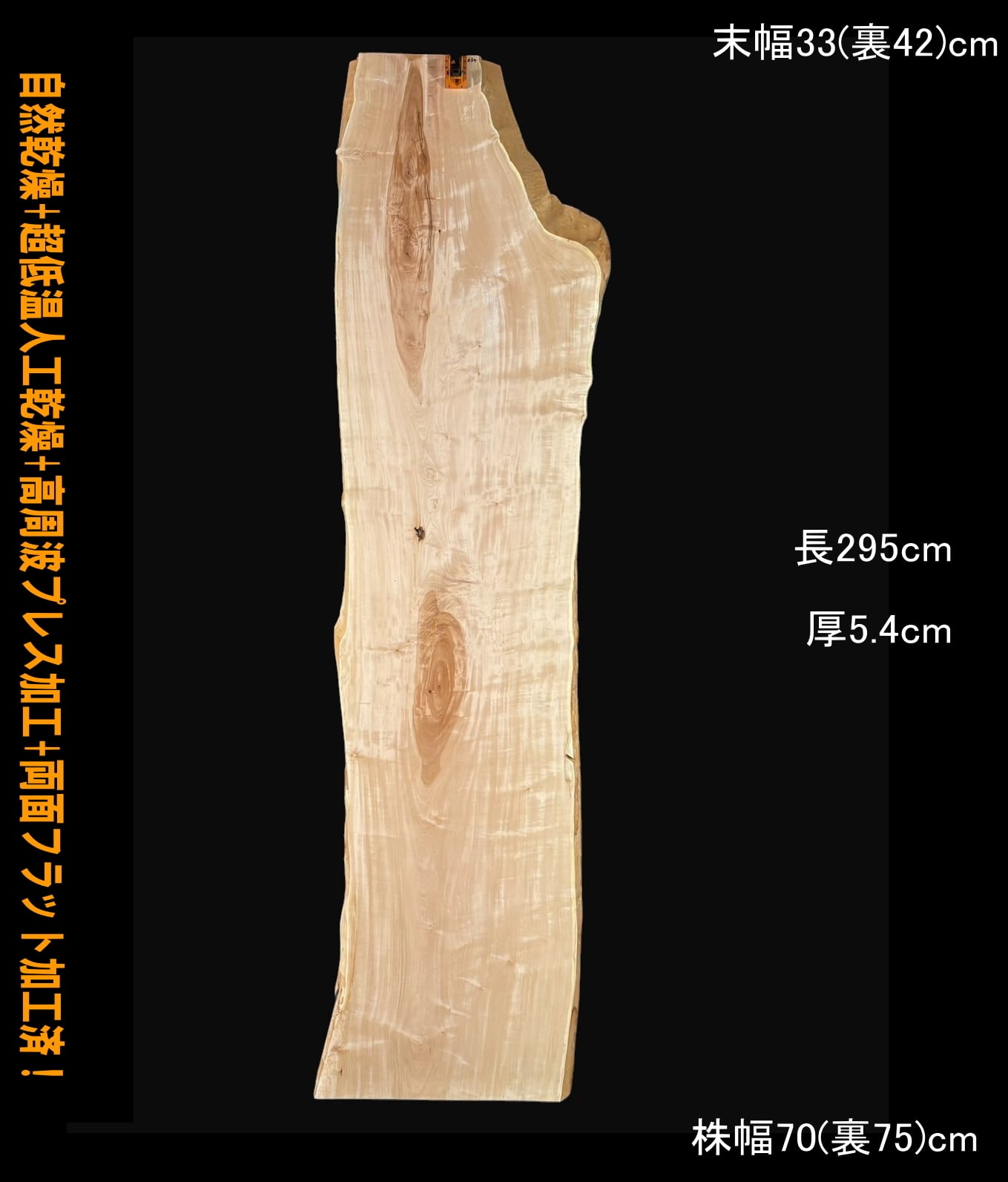 寸法:長295cm× 末幅33cm(裏42cm) ~中間幅74cm(裏78cm) ~ 株幅70cm(裏75cm)× 厚5.4cm 約58kg